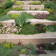 Plants may include Sedum, Leptinella, Thyme, Delosperma, Calylophus, Eryngium, Gypsophila, Iberis, Sempervivum, Phlox subulata, Erodium, and Pratia.