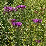 Vernonia noveboracensis Ironweed is native to the United States from Massachusetts to Mississippi. It thrives in moist soil, but can tolerate average and dry soil. It would be excellent in rain gardens.
