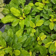 Even among its colorful Ajuga brethren, 'Tropical Toucan' stands out with large, golden leaves that spread into a beautifully shining groundcover. It stays short and spreads quickly. Also known as "bugleweed," Ajuga 'Tropical Toucan' sports complementary blue flower spikes in late spring that attract pollinators.